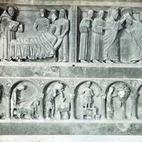 - Lucca, Dom San Martino, Westfassade, Vohalle, Reliefband (links neben dem Hauptportal)