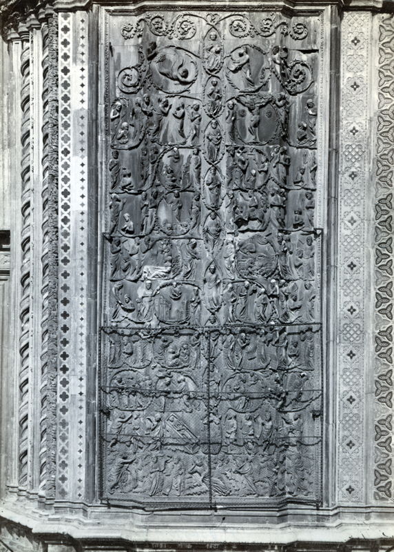 Orvieto, Dom Santa Maria Assunta (außen), Westfassade, Pfeiler Mitte links (zweiter Pfeiler von Norden)